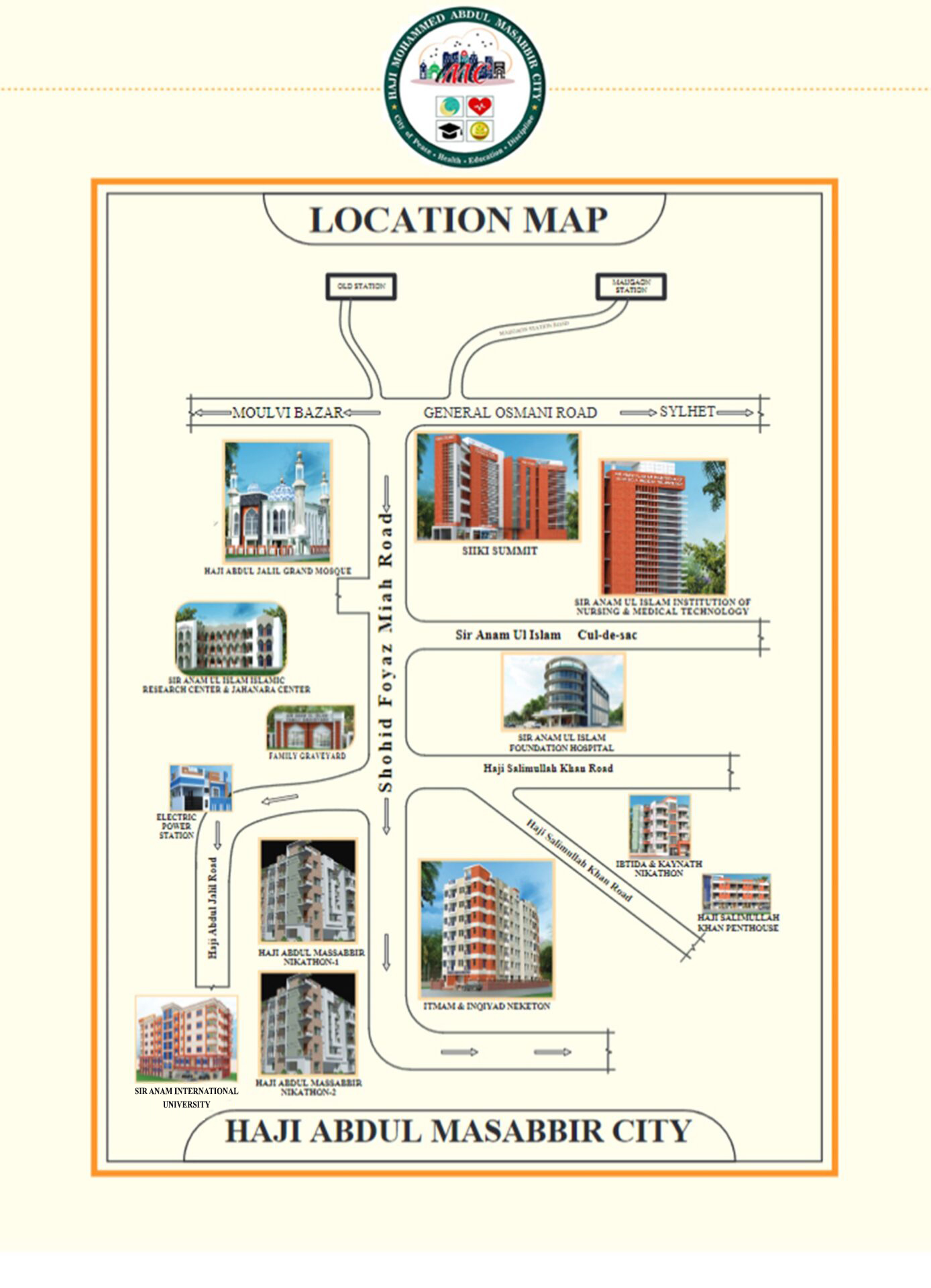শিক্ষাঃ- বাংলাদেশের মানুষ অতি উৎসাহের সাথে পড়ালেখা করার জন্য বিদেশে পাড়ি জমাচ্ছে এবং তার জন্য গুনতে হচ্ছে বড় অংকের খরচ  এবং সাথে সাথে বাংলাদেশ হারাচ্ছে শত শত কোটি ডলারের বৈদেশিক মুদ্রা এবং দেশের স্বার্থকে সামনে রেখে এই শহরে তৈরী হচ্ছে ইংলিশ মিডিয়াম, প্রাইমারী শিক্ষা, মাধ্যমিক শিক্ষা, উচ্চ মাধ্যমিক শিক্ষা ও আন্তর্জাতিক মান সম্পন্ন University যার এফিলিয়েট হয়েছে UK University এর সাথে। তার পাশাপাশি রয়েছে নার্সিং শিক্ষা যেখান থেকে নার্সিং পাশ করার পর সুযোগ রয়েছে বিদেশে গিয়ে কাজ করার সুবিধা। আরও রয়েছে ব্যতিক্রমধর্মী মেডিকেল ইকুইপমেন্ট চালানো শিখানোর জন্য দক্ষ কারিগর তৈরীর ইনস্টিটিউট।